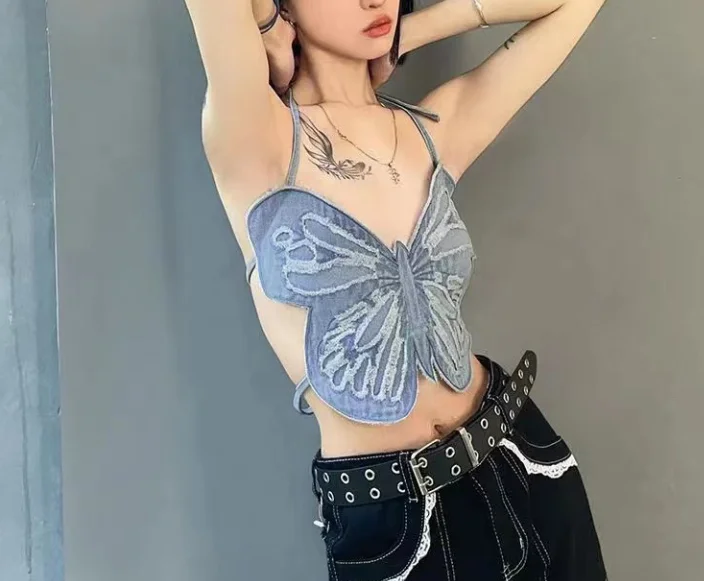 Be the first to review “Summer Y2K Tops Woman 2025 Butterfly Pattern Design Tank Top Women’s Sexy Girl Backless Hanging Neck Tie Sexy Niche Camisole Top”